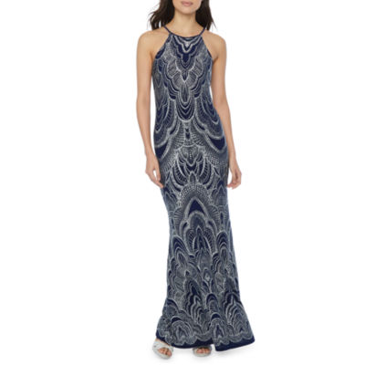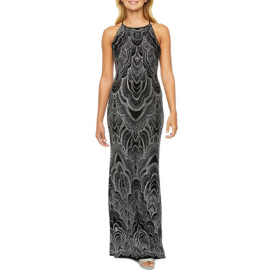 Blu Sage Sleeveless Glitter Knit Evening Gown